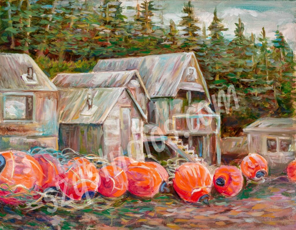 “Boat Buoys on the side of a Boat” Homer Alaska. Oil on gallery canvas 22 x 28 inches