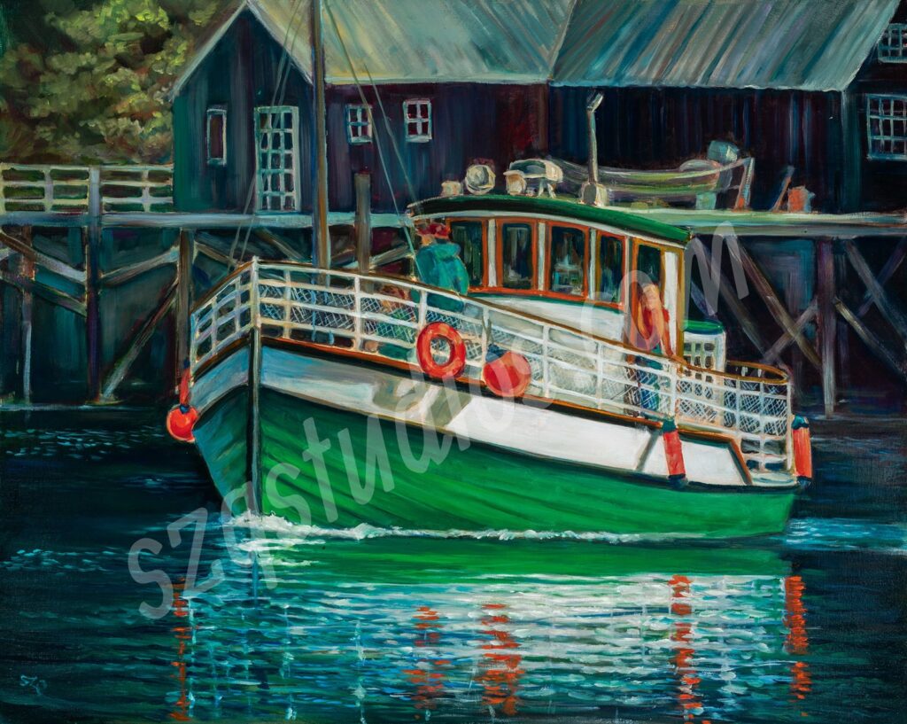 “Ferry at Halibut Cove” oil on gallery canvas 24 x 30 inches