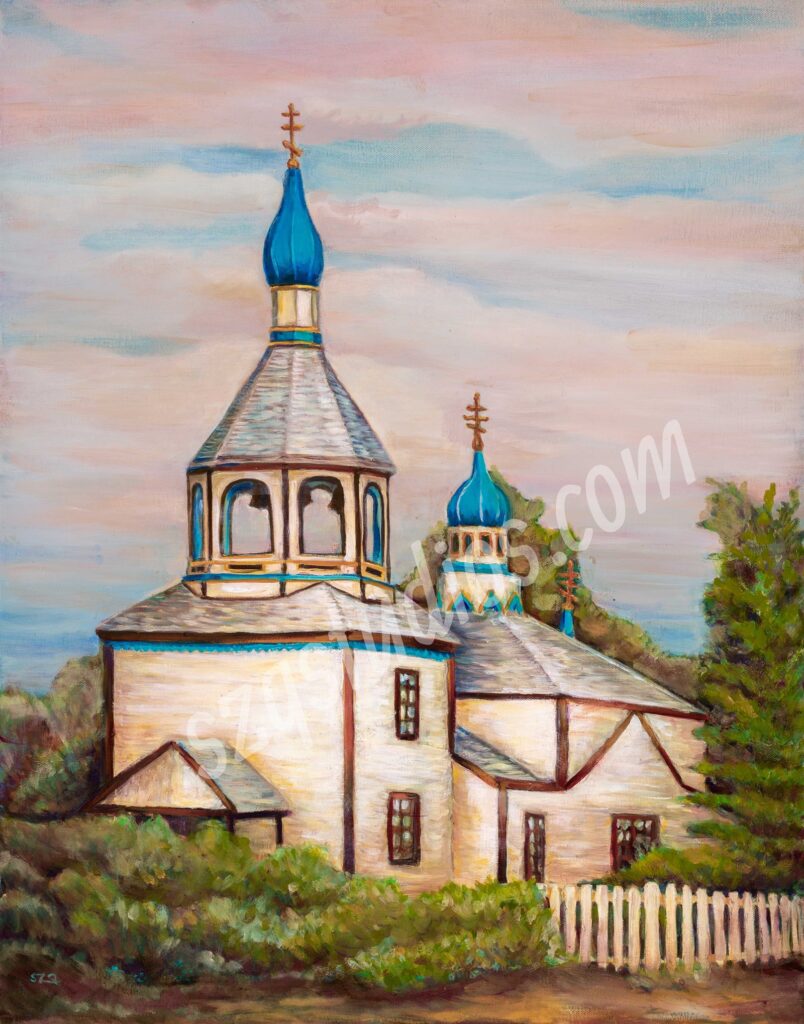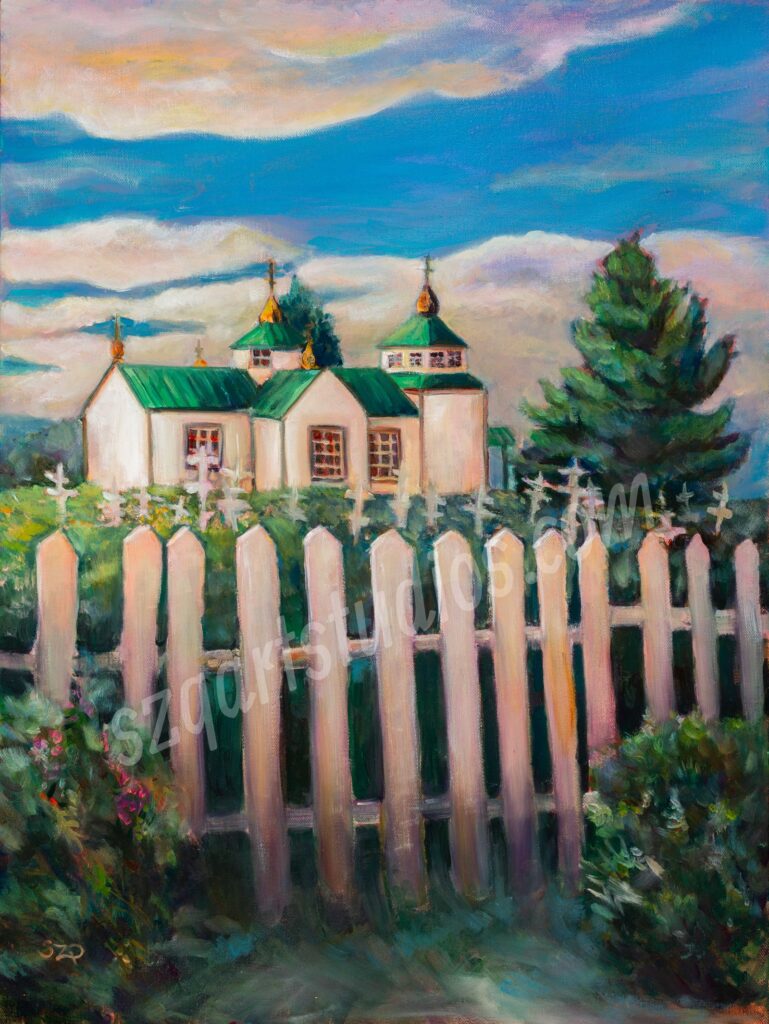 “Russian Church in Kenai Alaska” oil on gallery canvas. SOLD