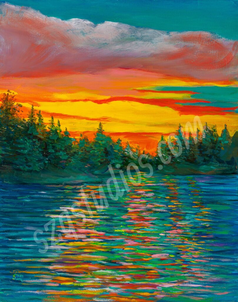 “Kenai River at Midnight” Alaska. My family was fishing at 12:30 midnight. Alaska is called ‘the place of the Midnight Sun’. The long night is one of my favorite things about Alaska. The sky burst with fire and the roar of the river was so powerful tears ran down my face. I am so blessed to be a part of Alaska . SOLD