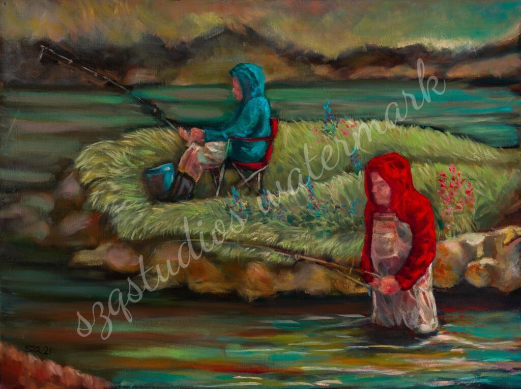 “Two People Fishing” Clam Gulch Alaska Oil on 5/8 18 x 24 inches canvas