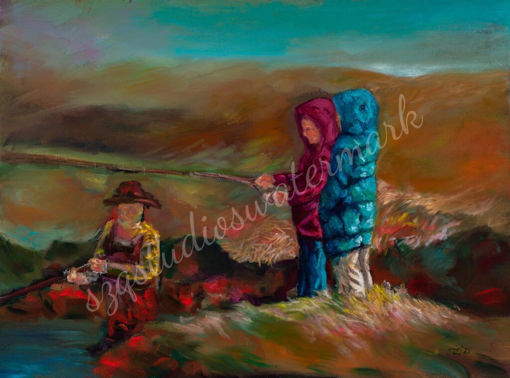 “Fishing Family” Clam Gulch Alaska Oil on 5/8 Canvas SOLD
