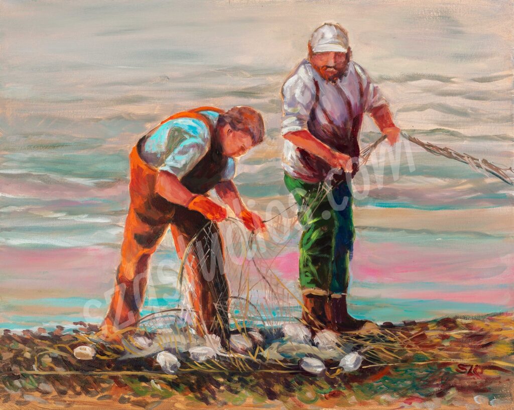 “Two Set-Netters” Oil on gallery canvas. 16 x 20 inches