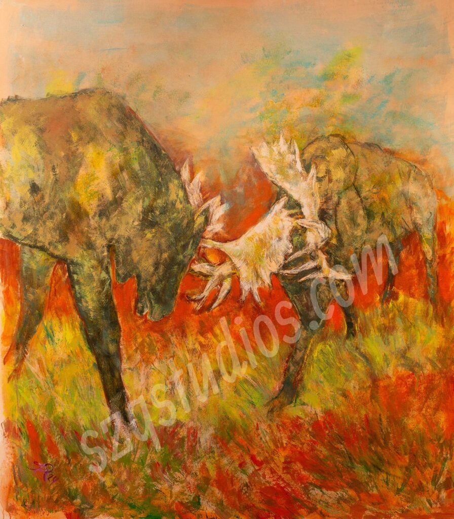 “Moose light” Original Airbrush on watercolor board 13×16