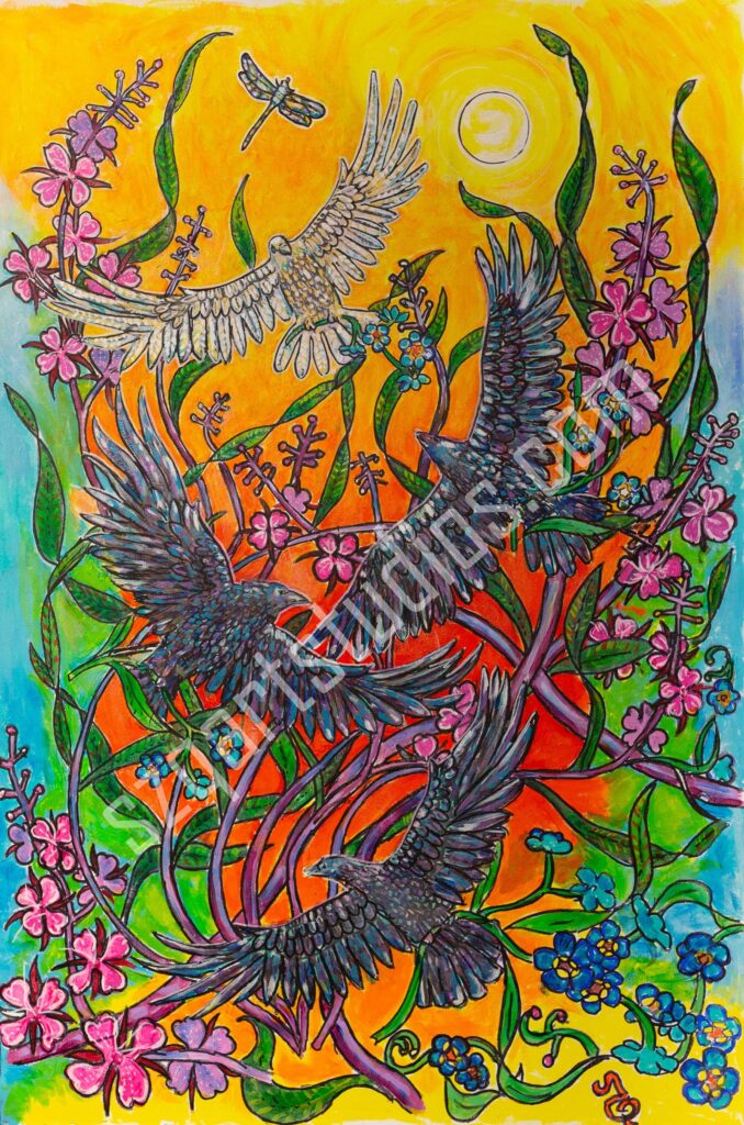 “Song of the White Raven” A mural approximately 5 x 5 feet